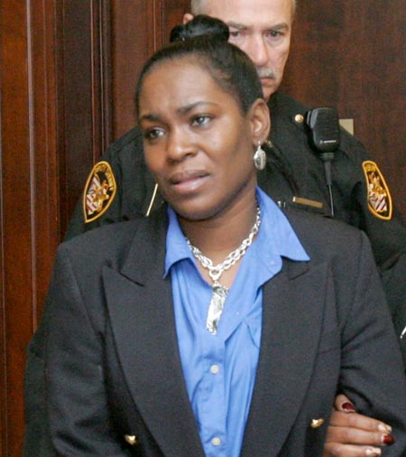 | Kelley Williams-Bolar is shown in a "perp" walk as she is escorted to a hearing for allegedly falsifying paperwork to have her child go to school in a better part of Akron, Ohio. |